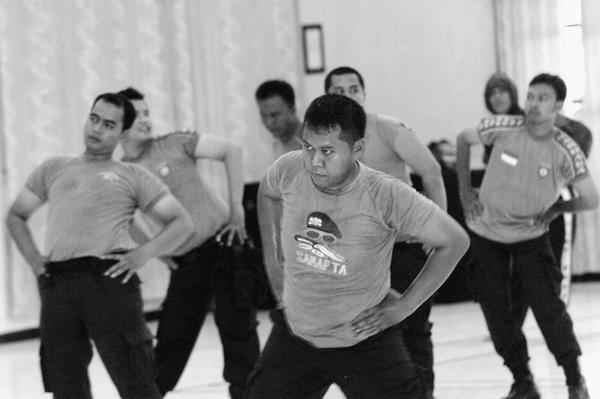 ”Terserah mereka mau bergerak seperti apa, yang penting berkeringat,” kata Panji yang sengaja mematikan alat pendingin ruangan di aula serta menutup semua pintu dan jendela agar peserta lebih cepat berkeringat.